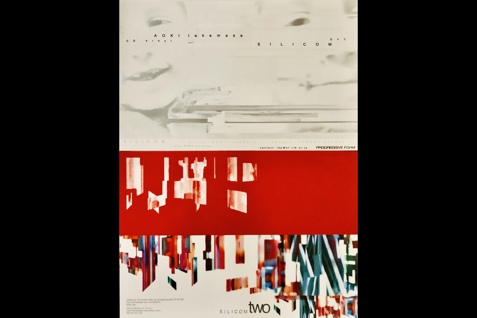 第二回目の最後で、「2000年の初頭だったと思う、DJ Kenseiと親交の深かった京都のDJ Kazumaから<京都で面白い事をやっている大学生達がいるんだけど今度京都来た時に会いに行かない?>と紹介されたのが青木 孝允(AOKI takamasa)と高木 正勝で、彼らがシェアしていた京都市内のマンションで彼らと会う事になりました。言わずと知れた翌2001年にSILICOMとして作品をリリースした2人で、彼らのMacで当時制作をしていたSILICOMのDVDに収録される事になるオーディオ・ビジュアル作品を中心にとても興味深く作品を拝見させて頂いたので事を覚えています。3回目では、PROGRESSIVE FOrMレーベルの最初のリリース作品となった<SILICOM>に触れたいと思います」と閉じつつ、前回の第3回では寄り道をしました。