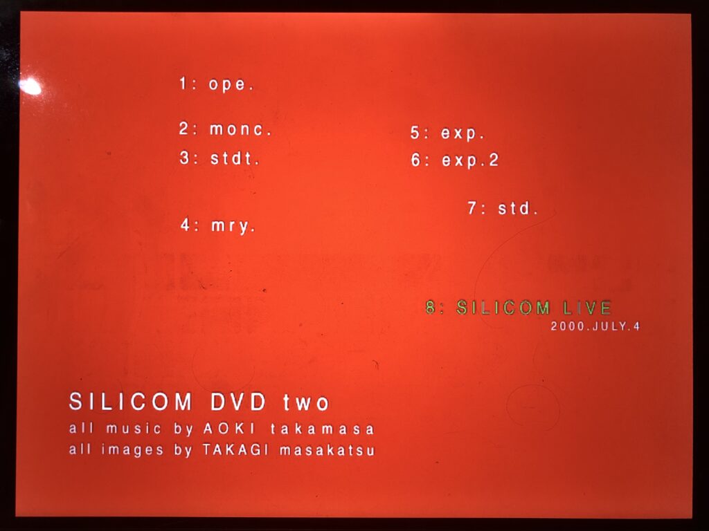 1)SILICOM 2001/12/31@Garden Room AOKI takamasa and Takagi Masakatsu「2001~2002のカウントダウン!!!!」(諸事情でリンクは機能しておりません) https://www.youtube.com/watch?v=bg-DZvBS2lE