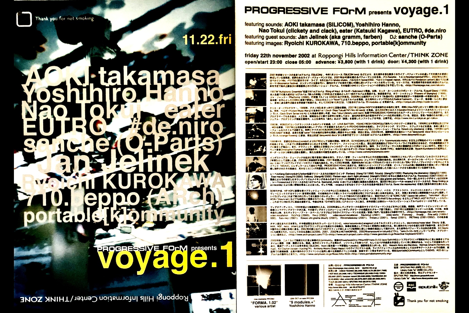 そして2002年終盤のハイライトが、200211月22日に今は無き六本木ヒルズTHINK ZONEで開催されたPROGRESSIVE FOrM初のレーベルイベント「voyage.1」。