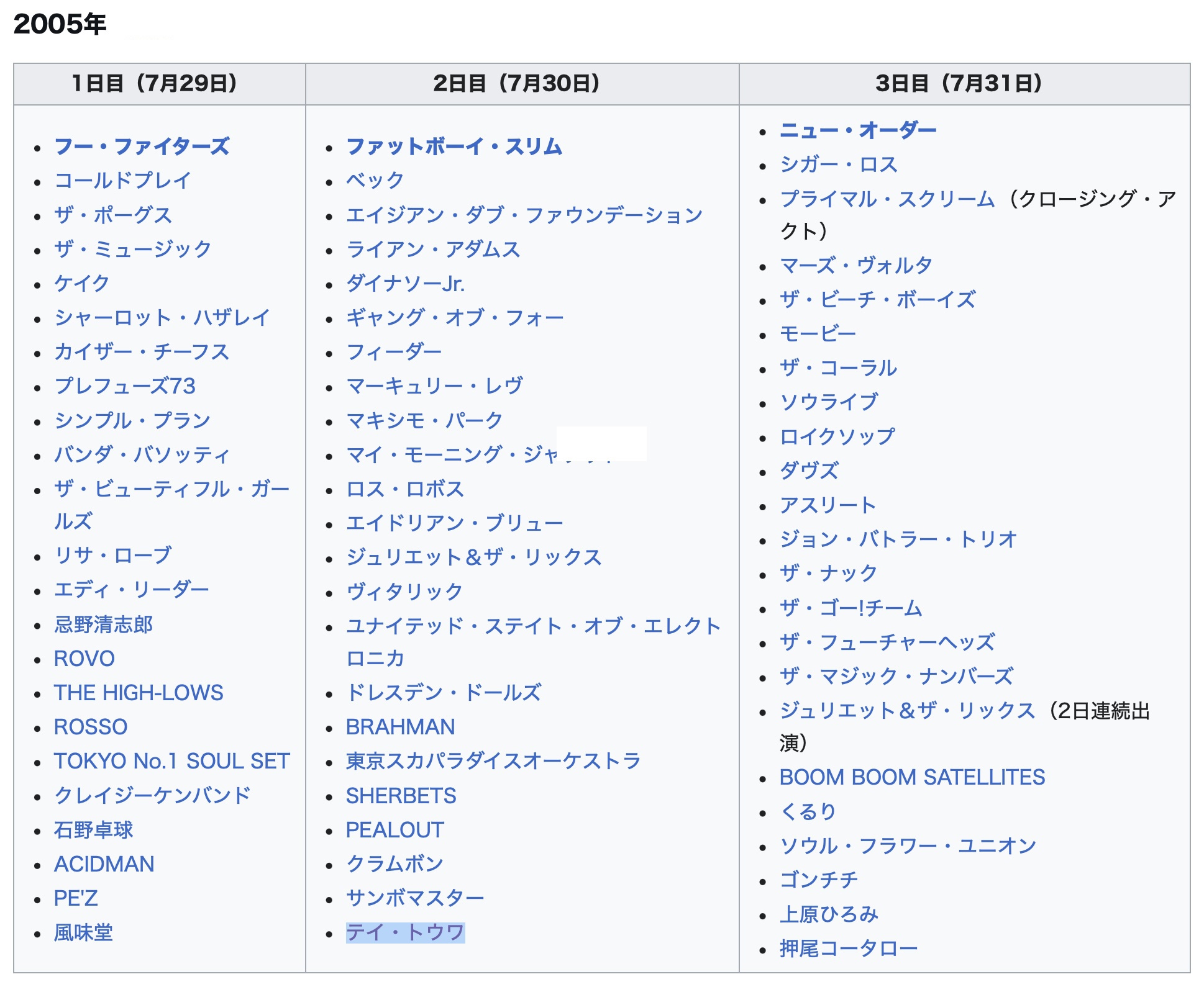 そして翌月末の2005年7月30日には「FUJI ROCK FESTIVAL ’05」の2日目レッドマーキーにDJでテイさんが出演、久々のフジロック気持ち良かったです。