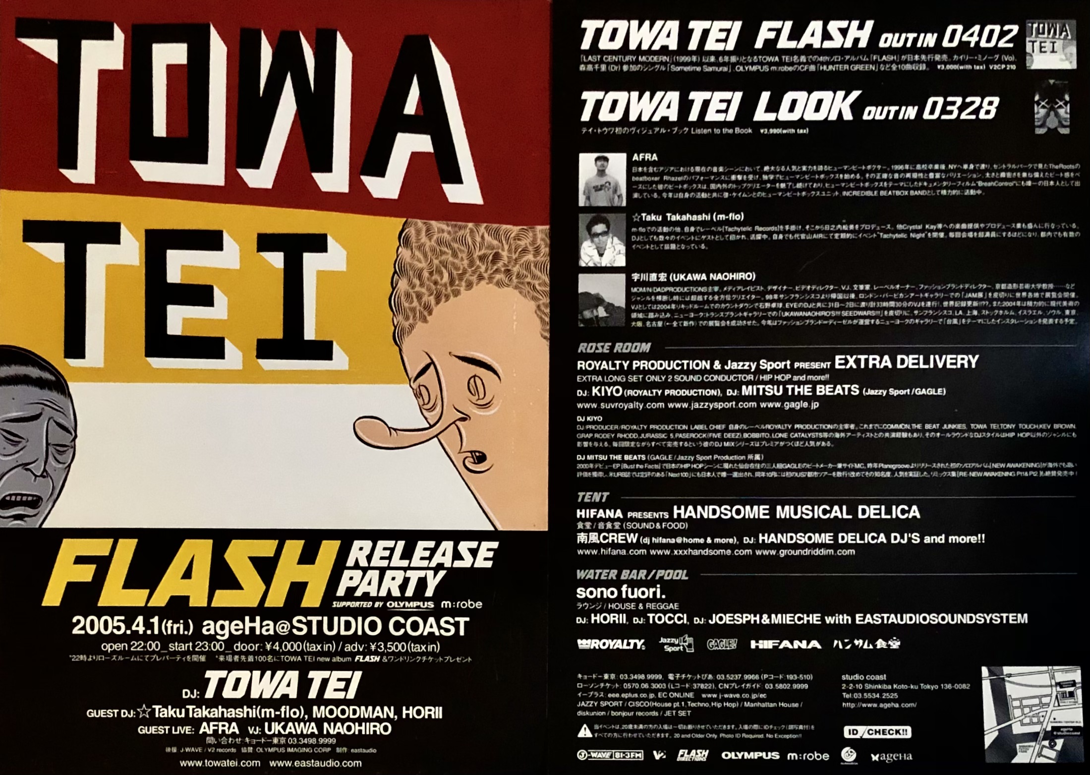 そして、2004年4月からテイさん(テイ・トウワ/TOWA TEI)のマネジャーになった事に伴い、2005年4月2日に発売となった4thアルバム「FLASH」の制作と簡単なアルバムの紹介、そして2005年4月1日の新木場ageHaから6月12日(日)の恵比寿LIQUIDROOM公演までのアルバム「FLASH」ツアーまでを紹介しました。