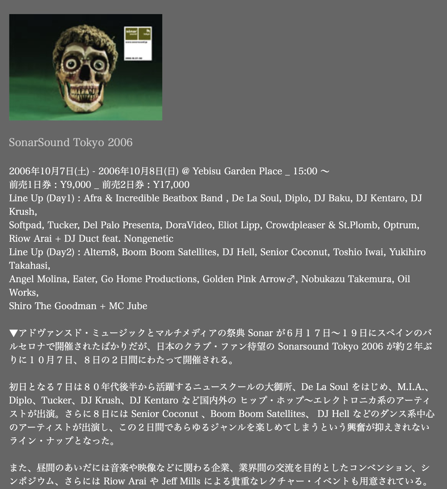 まずは2006年10月7日(土)~9日(月祝)と開催した「sonarsound tokyo 2006」。