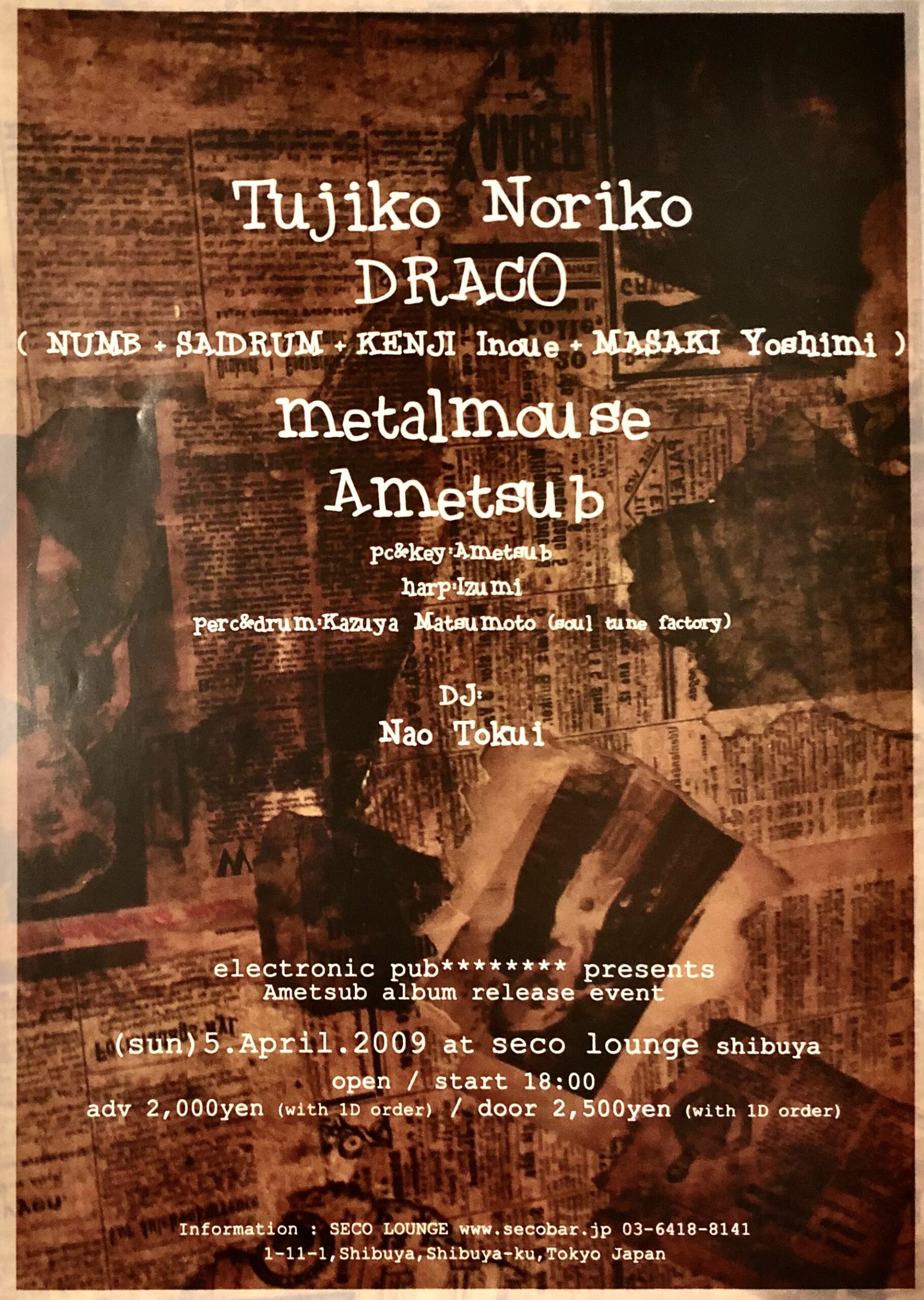 2)electronic pub******** presents Ametsub album release event 2009/4/5(Sun)
