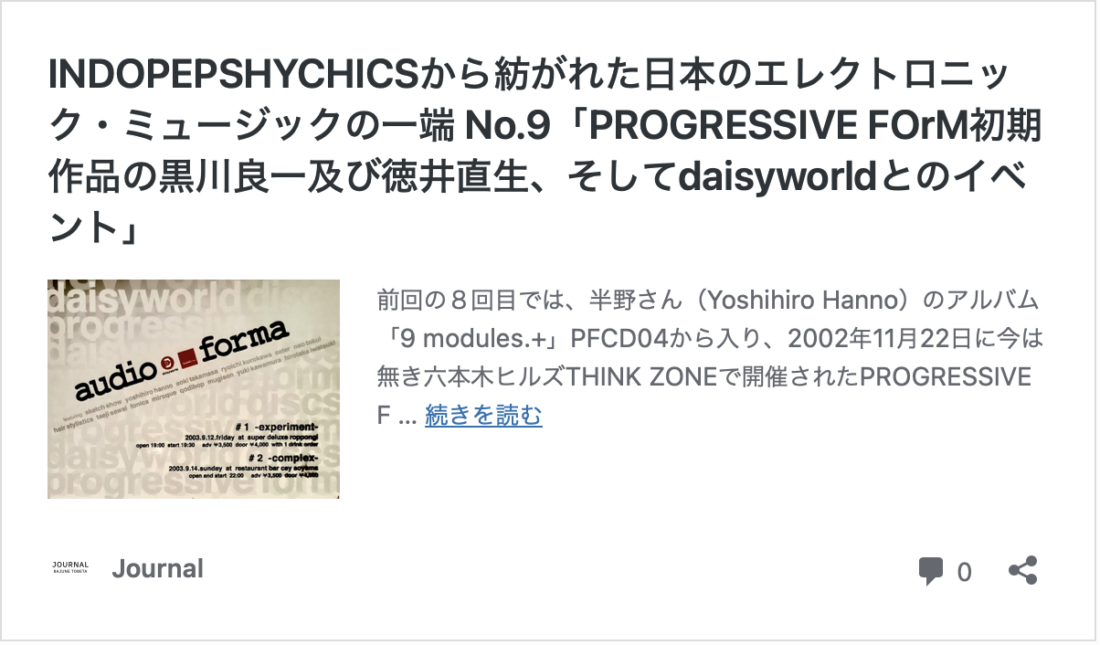 ※アーティストプロフィールも残っています。https://www.clubberia.com/en/events/146511-PROGRESSIVE-FOrM-presents-New-Sounds-of-Tokyo-Vol-2