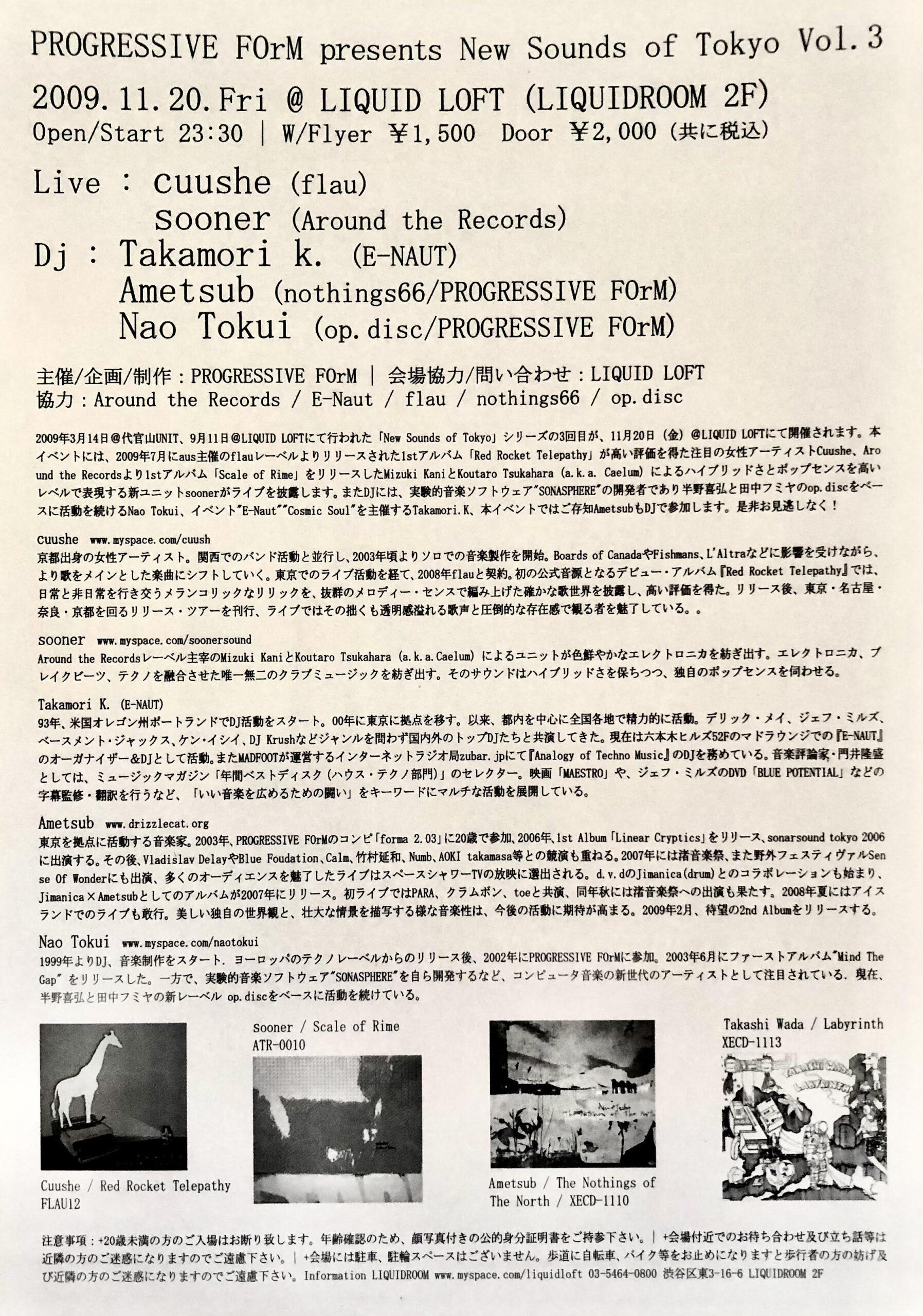1)PROGRESSIVE FOrM presents New Sounds of Tokyo Vol.3 2009/11/20(Fri) at LIQUID LOFT 恵比寿 (LIQUIDROOM 2F)