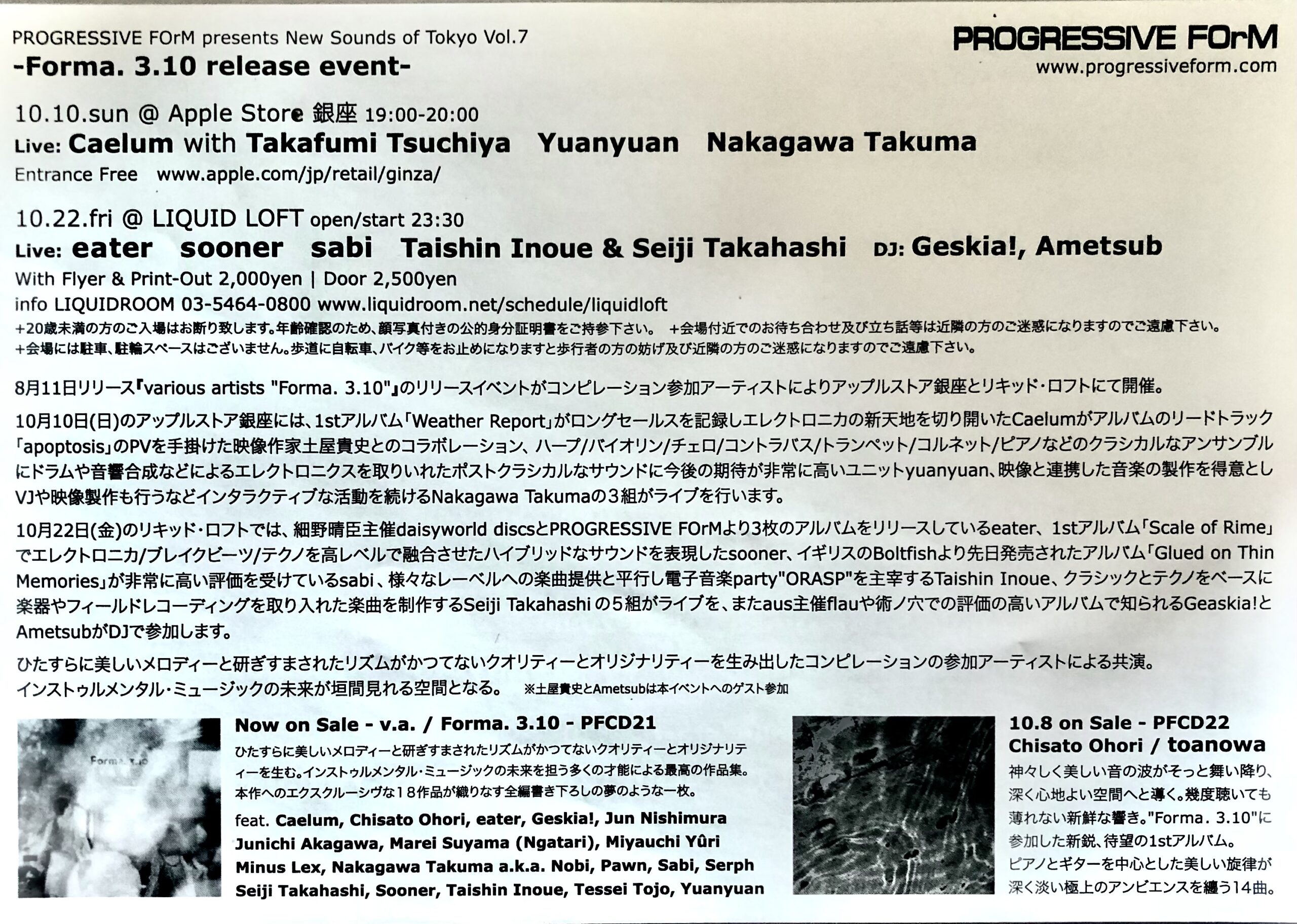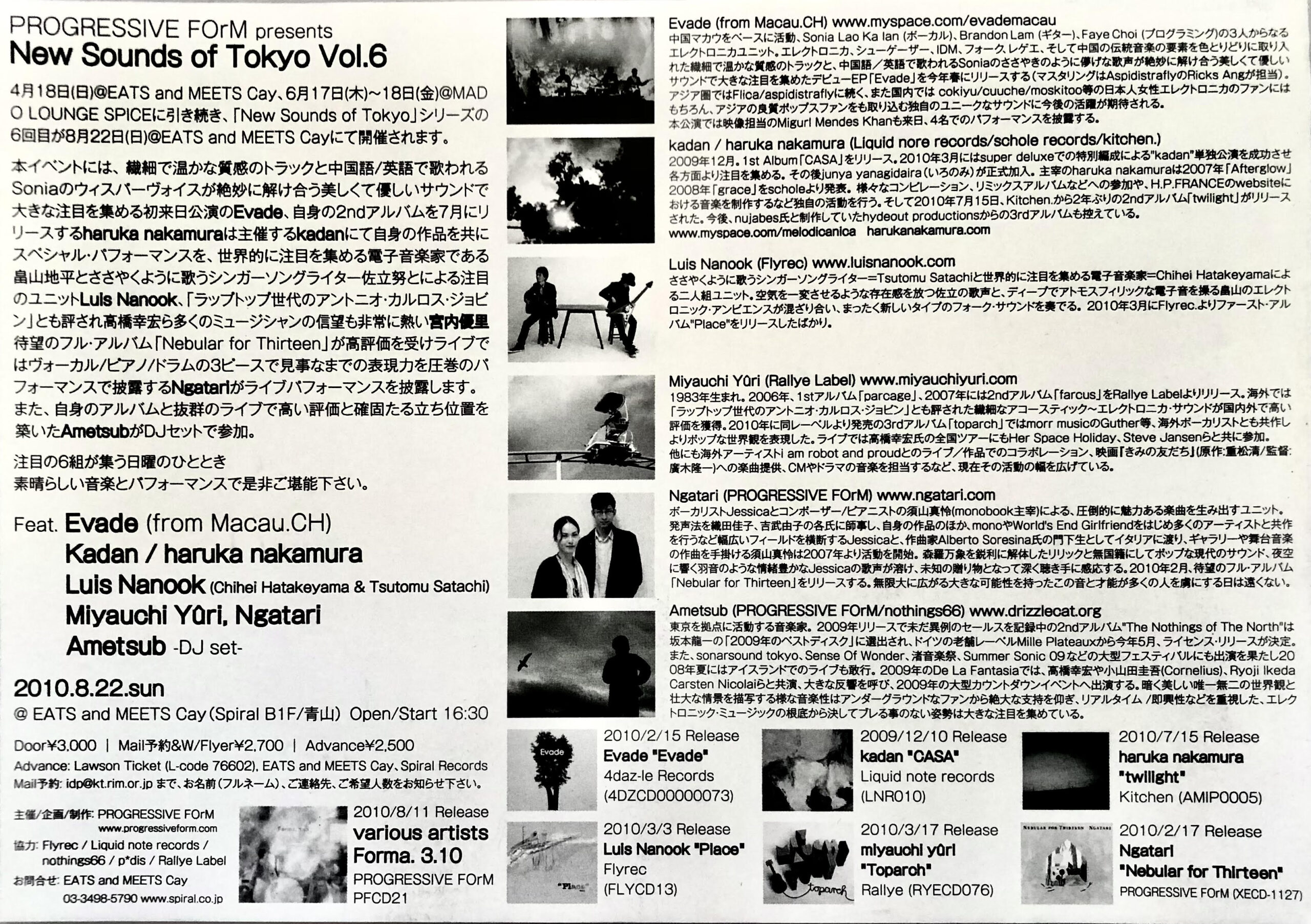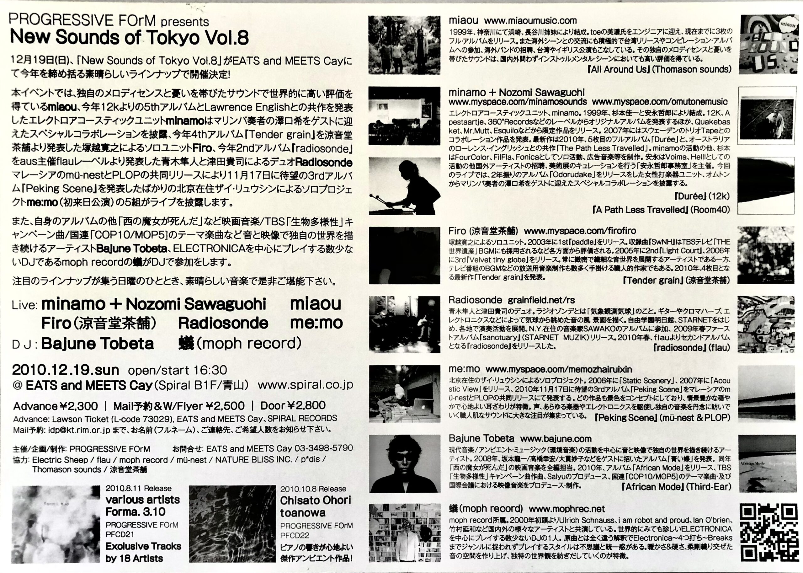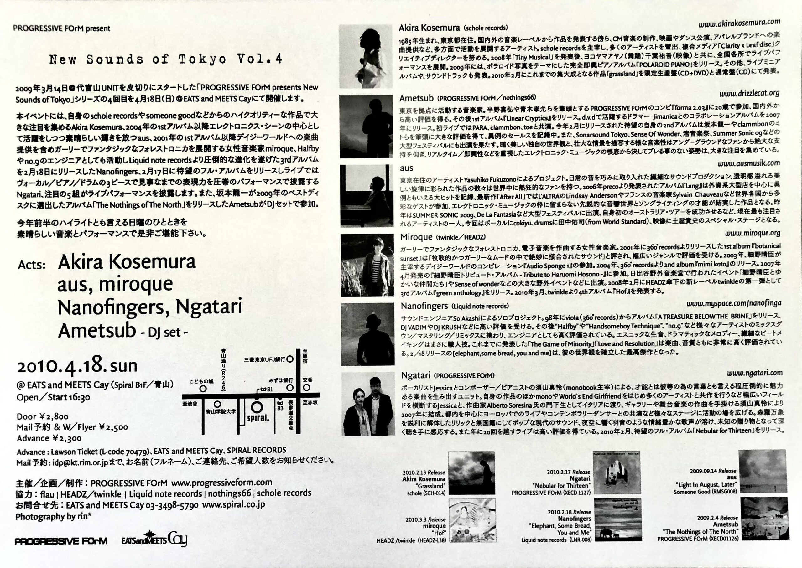 2)PROGRESSIVE FOrM presents New Sounds of Tokyo Vol.4 2010/4/18(Sun) at EATS and MEETS Cay (Spiral B1F/青山)