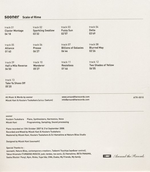 ◆2009/4/29リリース Sooner「Scale Of Rime」(Around The Records – ATR-0010)