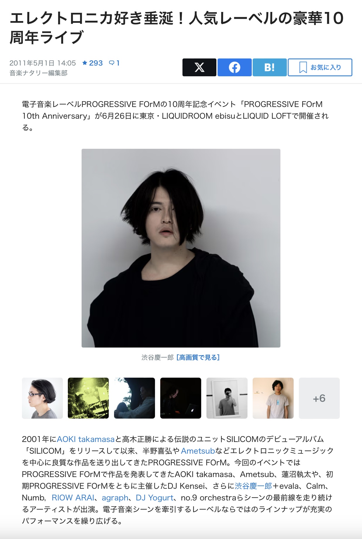 音楽ナタリー「エレクトロニカ好き垂涎!人気レーベルの豪華10周年ライブ」