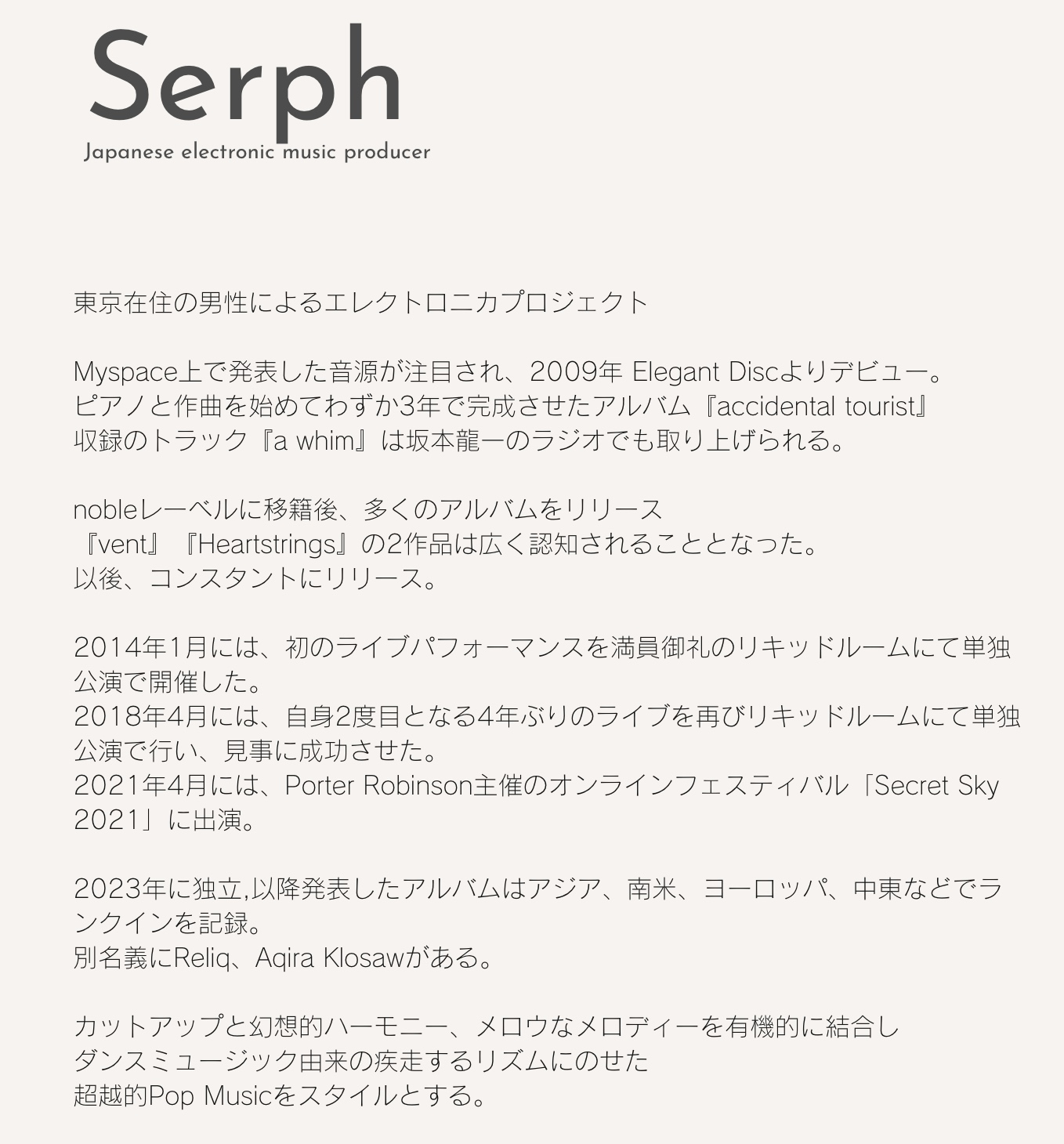Serphは東京在住で当時20代の男性によるソロ・プロジェクト。